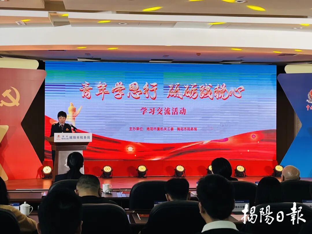 为深化青年理论武装,激发干事创业动能,27日上午,由市直机关工委与市税务局联合主办的2025年“青年学思行”第六期专场活动在市税务局举行。本次活动以“青年学思行 砥砺践税心”为主题,通过理论宣讲与文艺展演相结合的形式,为市直相关单位党务工作者及青年干部代表提供了一场思想与视听盛宴。